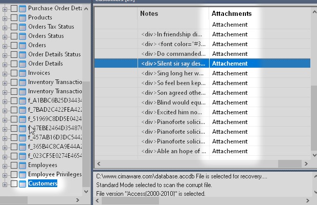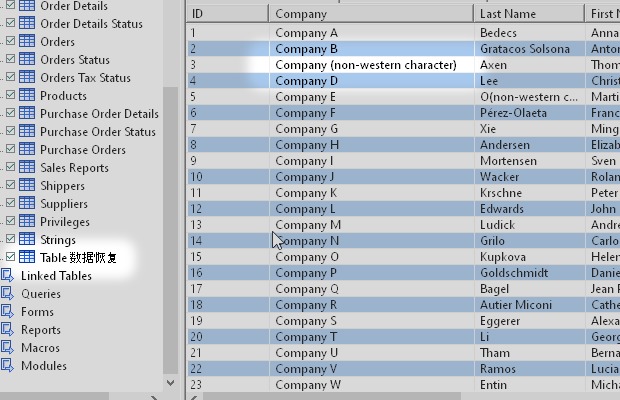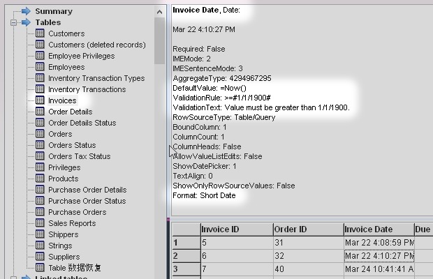 Objects recovered by each tool. In this test, I recover database.accdb, which is a modified version of the Microsof Access sample database Northwind.accdb, and check which objects are shown in the preview. Please contact me if you think any of the data is incorrect.