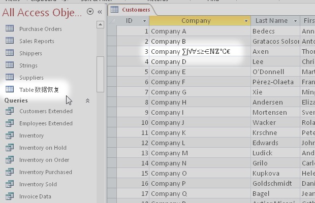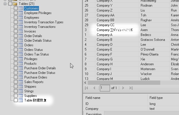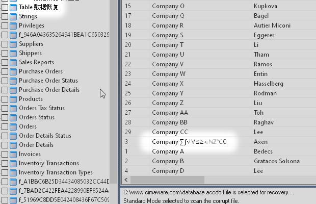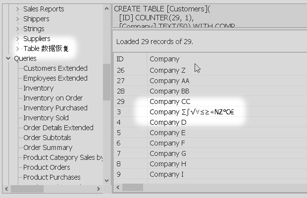 This means that, after the recovery process, data that the application cannot read will be lost. Depending on the tool, these are: Indexes, Table relationships, Calculated fields, Field properties, such as Default value, Date or number format, Comments or Validation rules. Regarding the content, Unicode texts (not western and other symbols) and some field types such as Attachment or Decimal (variable precision numerical) may be missing.