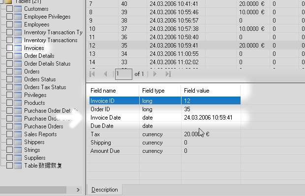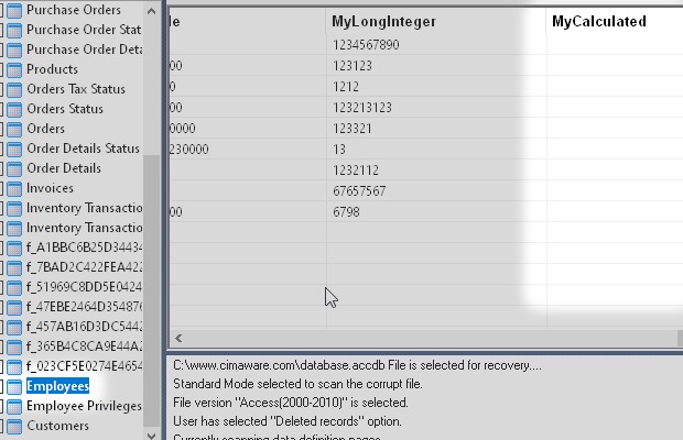 I have also simulated common data loss situations such as deleted records, deleted objects and structural damage.