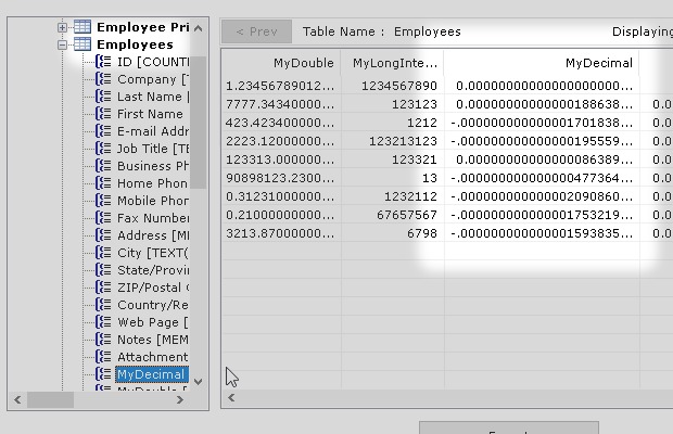 A numeric field of size Decimal allows us to indicate how many digits are stored in the field, up to a maximum of 28.