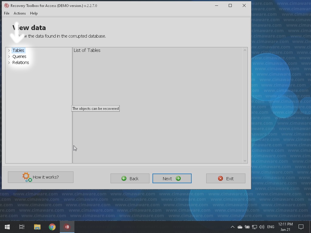 Toolbox | Recovery Toolbox for Access | 2.2 | Tables and queries. | |
