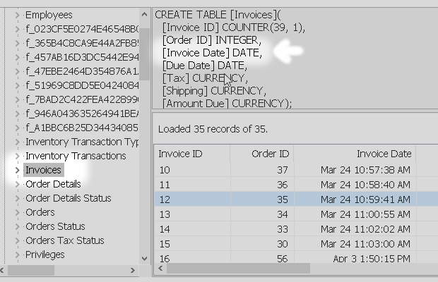 In an accdb file, the data from a table is stored in two separate parts: