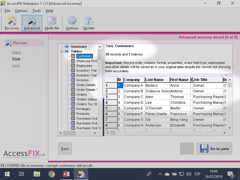 Once we have saved the file from AccessFIX, we have completely recovered the table.