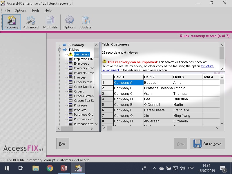Let's recover the same file from the previous example with AccessFIX. Look at the screenshots below: